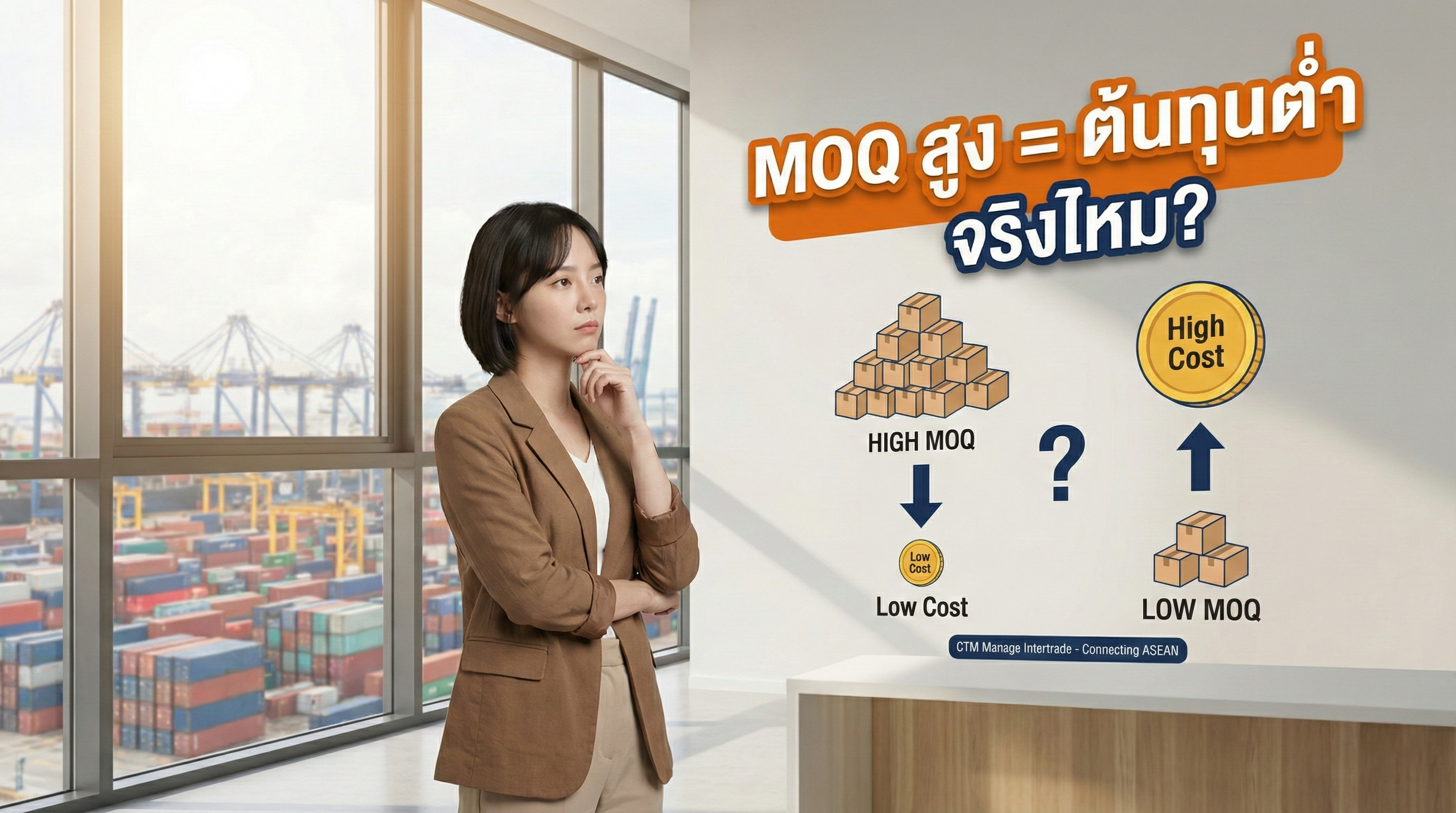 บทความนี้ CTM Manage Intertrade จะพาไปทำความเข้าใจเรื่อง MOQ แบบไม่วิชาการ ไม่ซับซ้อน และเชื่อมโยงให้เห็นชัด ๆ ว่า MOQ ส่งผลกับต้นทุนจริงยังไง